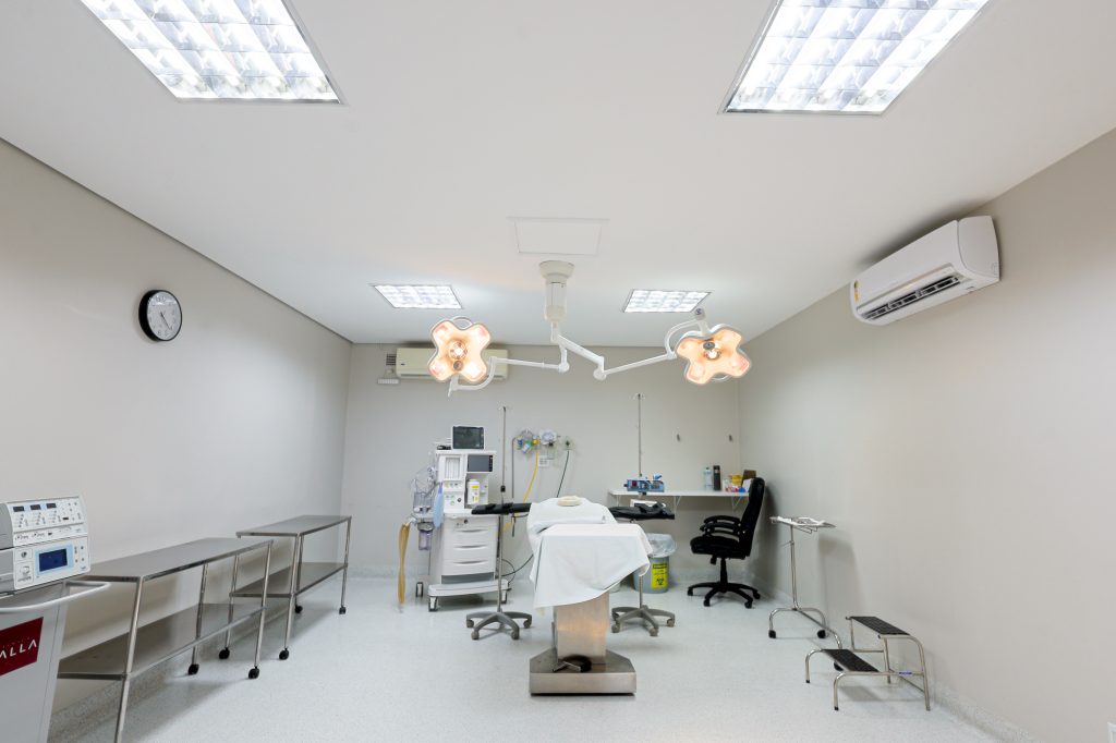 Cinco salas equipadas com tecnologia de ponta, anestesia moderna e suporte para diversos tipos de cirurgia.